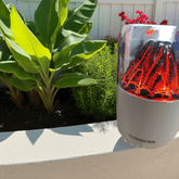 - Efeito de chama vulcânica – cria uma atmosfera acolhedora e relaxante.